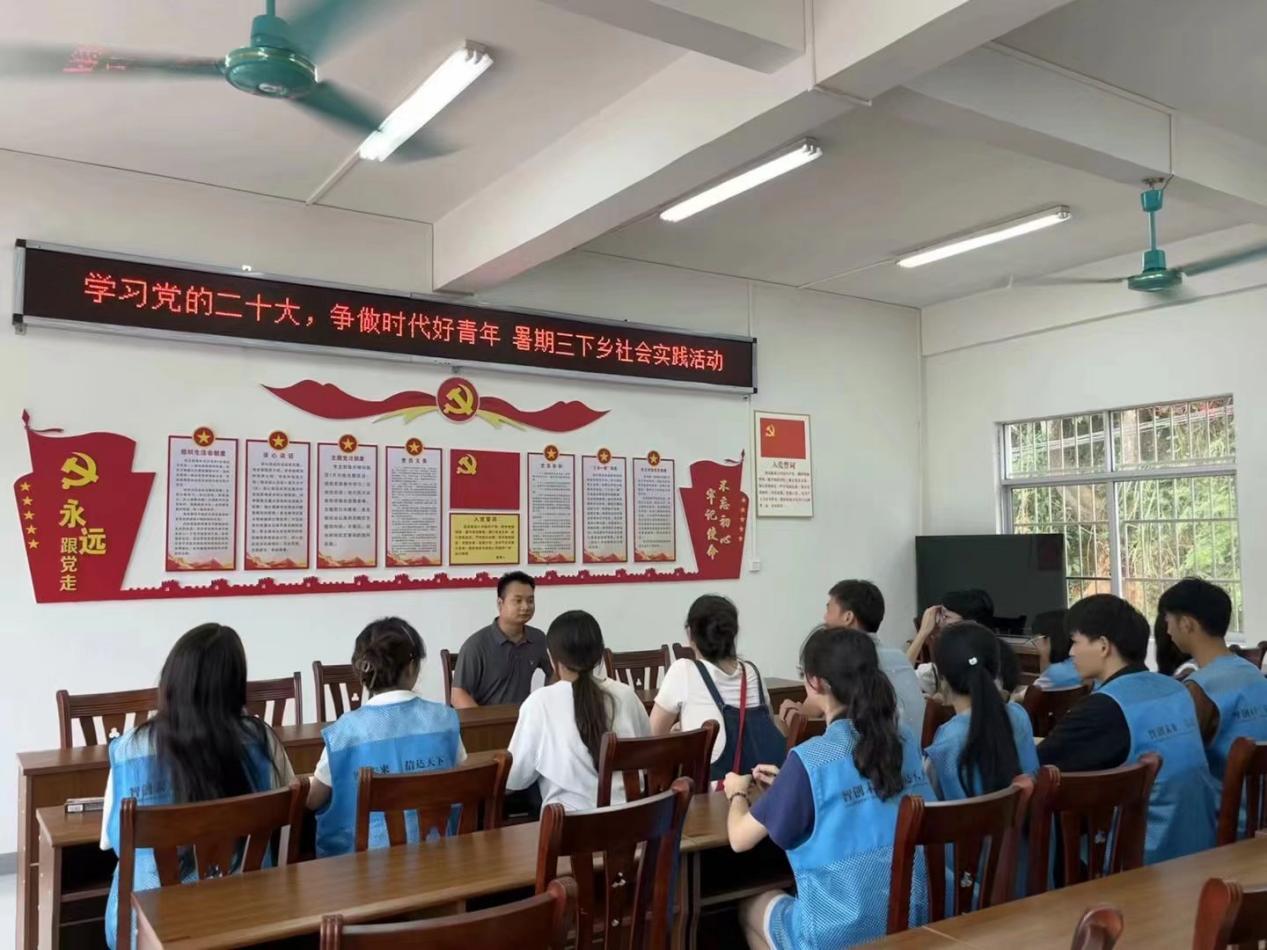 为了进一步深入学习贯彻党的二十大精神,提高同学们对党的认知,加强党性修养,暑期“三下乡”社会实践队成员在烟墩镇司练村支部委员会会议室召开了“学习党的二十大,争做新时代新青年”座谈会。本次座谈会邀请了司练村委员会团支部书记莫宇昌作为主讲。