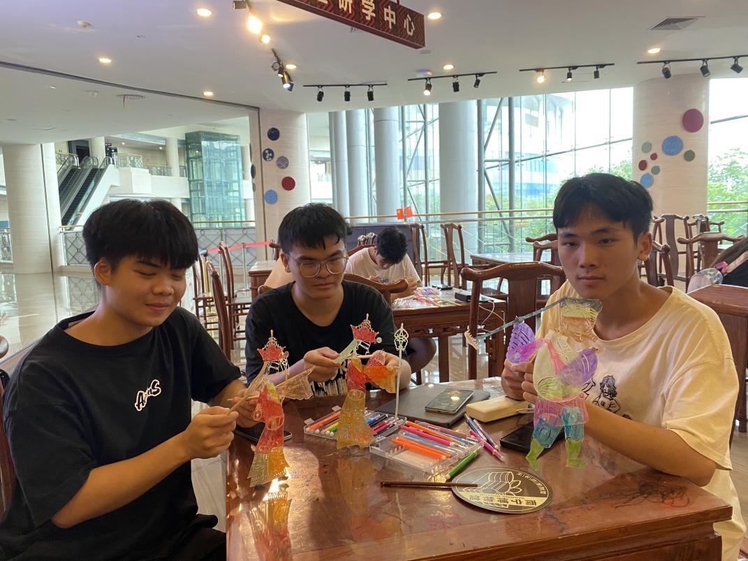 表演结束后,皮影老师给每人一个皮影,让大家发挥自己的想象力,来动手体验给皮影敷彩。敷彩完成后,大家陆续上台,通过使用操纵杆让各种角色的皮影“活”起来,与非物质文化皮影戏来了一场零距离接触。活动现场笑声不断,十分欢乐。