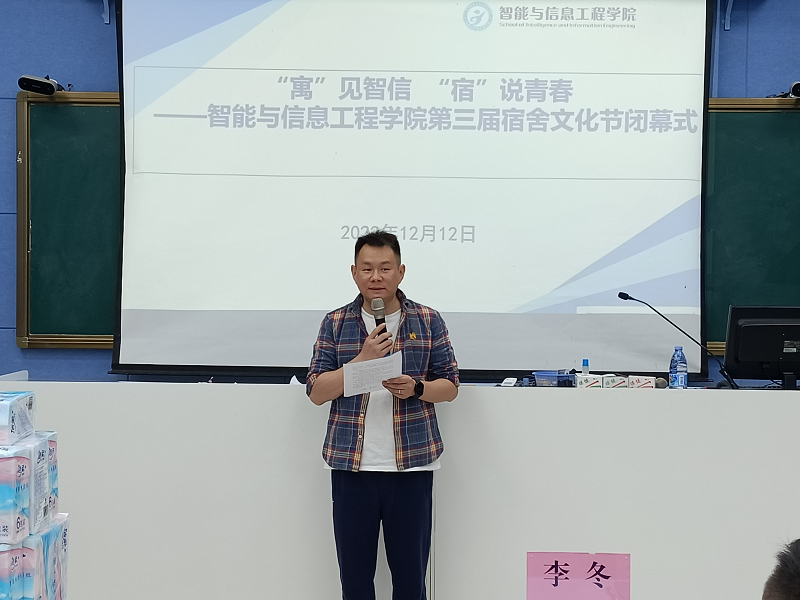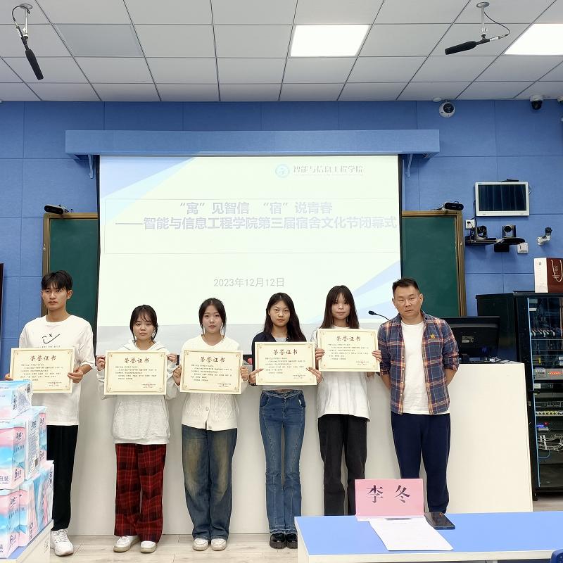 为了进一步推进宿舍文明建设,丰富大学生宿舍文化,加强我院学生的文明修养,营造温馨舒适的宿舍环境,本学期我院正式开展以“‘寓’见智信,‘宿’说青春”为主题的第三届宿舍文化节,全院学生热情参与,圆满完成任务。12月12日在3栋112教室举行闭幕式,学院党总支副书记李冬、学院专职副书记潘慧妮以及全体辅导员、宿舍长代表参加本次闭幕式。