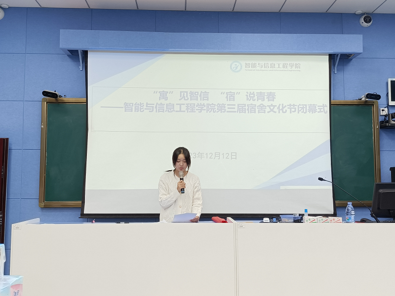 闭幕式上,李冬对本次宿舍文化节进行总结,他说到,在本次宿舍文化节中,全院同学积极参与,宿舍环境得到极大的改善,同学们展现出了新时代新青年积极向上的精神风貌,文化节取得圆满成功。同时,他对同学们提出了三点要求,一是同学们将宿舍文化节得到的收获运用到日常生活中,用实际行动为校园文化建设做贡献;二是希望同学们积极参与到学校的各项活动中,展示自己的特长,培养自己的创造力,促进同学之间的协助能力;三是希望同学们通过宿舍文化节的开展养成良好的卫生习惯,共同维护好宿舍的环境卫生。随后宿舍长代表发出倡议,宿舍是我们第二个“家”,希望每一位同学都爱护宿舍的环境卫生,营造良好舒适的住宿条件。最后李冬和潘慧妮为本次宿舍文化节获奖宿舍进行了颁奖。