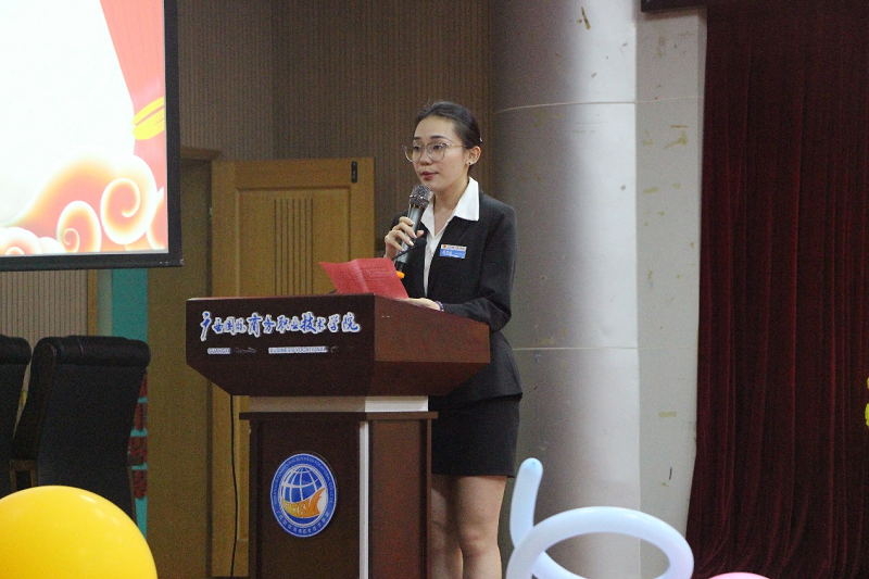 随后,22大数据3班周月妮作为学生代表发言。她分享了自身学习、工作和生活的经验感悟,对领导、老师和同学们对她的支持和帮助表达了感谢。与此同时,她向同学们发出了共同建设学院的号召,青春可贵,大家更应该在青春里熠熠生辉,不负韶华。