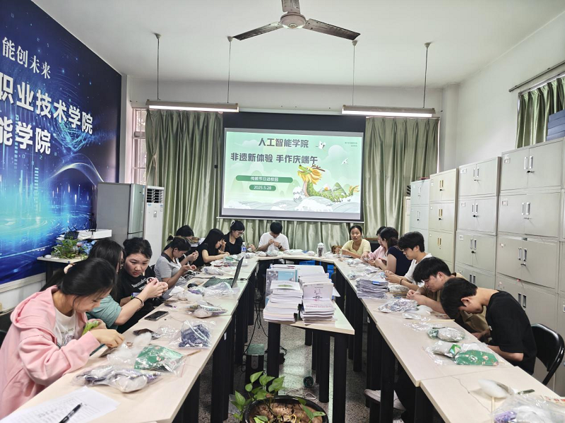 为弘扬中华优秀传统文化,增强师生对传统节日的文化认同感与民族自豪感,5月28日中午,人工智能学院在3-208会议室“非遗新体验 手作庆端午”主题活动。学院辅导员与25名学生代表开展了一场沉浸式端午文化实践体验。