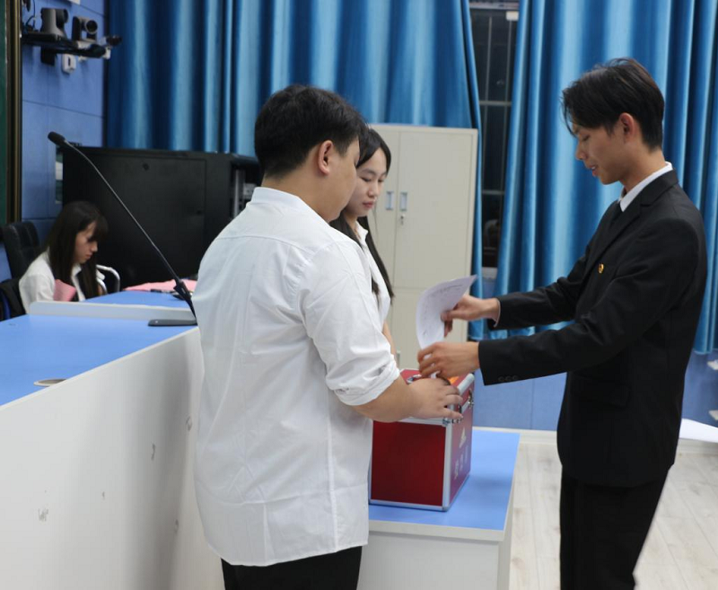 依照大会程序,8位候选人依次上台进行竞选演讲,他们激情澎湃的阐述自身优势、岗位认知以及未来工作规划。随后团员代表们投出手中神圣一票,选出新一届委员。韦名富及张凤鸣为团总支第十二届离任干部颁发聘书,肯定他们任职以来辛勤的工作。