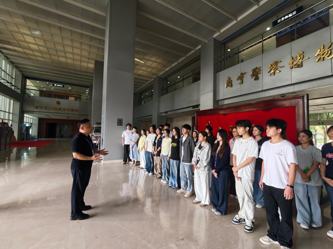 为进一步提升学院反诈志愿服务队的专业素养,夯实反诈宣传工作基础,切实增强青年学子的识诈、防诈、反诈能力,3月27日下午,我院组织反诈志愿服务队全体成员前往南宁市警察博物馆开展参观学习活动,沉浸式接受安全教育,聆听专业反诈宣讲。