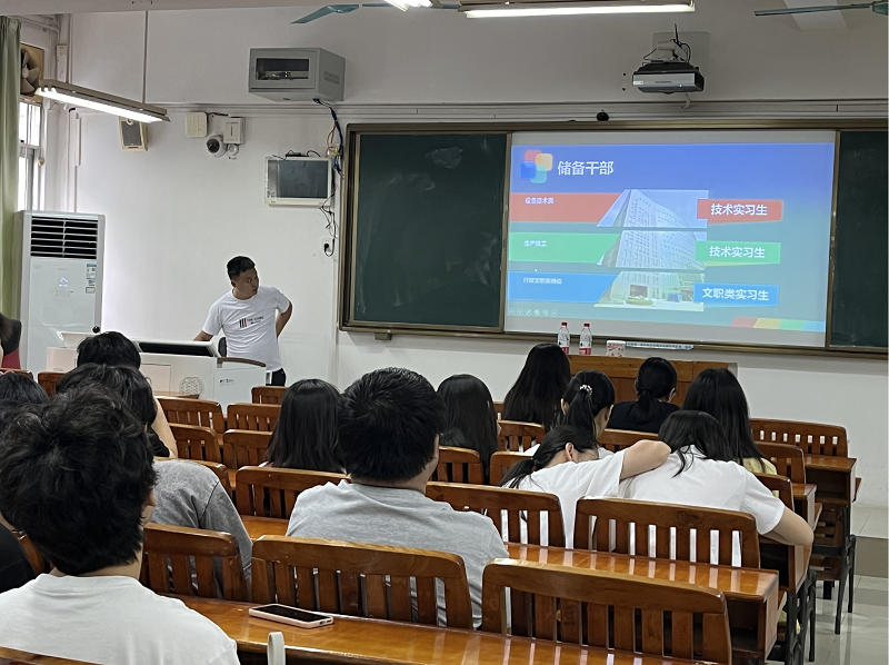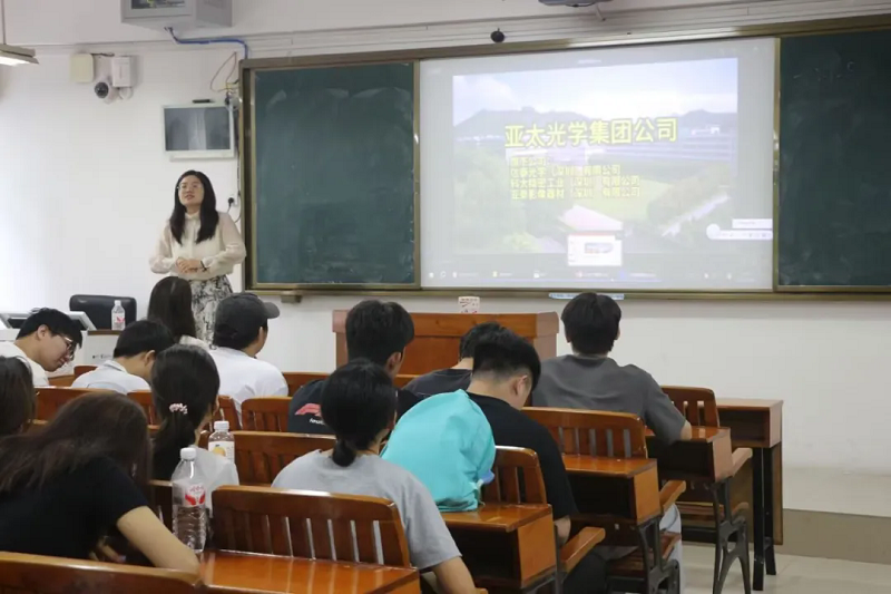 宣讲会上,各企业代表依次登台,通过精心准备的PPT展示、视频播放、现场讲解等多种形式,全方位介绍企业发展历程、企业文化、业务领域、岗位需求、人才培养体系以及薪资福利待遇等内容。日月光半导体(上海)有限公司作为全球知名的半导体制造服务企业,分享了其在行业内的领先技术和广阔发展前景;欣旺达电子股份有限公司作为新能源领域的佼佼者,展示了企业在动力电池、储能系统等方面的创新成果和人才需求方向;亚太光学集团凭借在光学制造领域的深厚底蕴,吸引了众多对精密制造感兴趣的学子;桂林领益制造有限公司着重介绍了公司在消费电子精密功能器件及结构件领域的卓越成就;舜宇集团则以其创新的业务模式和充满活力的团队氛围,赢得了不少同学的关注。