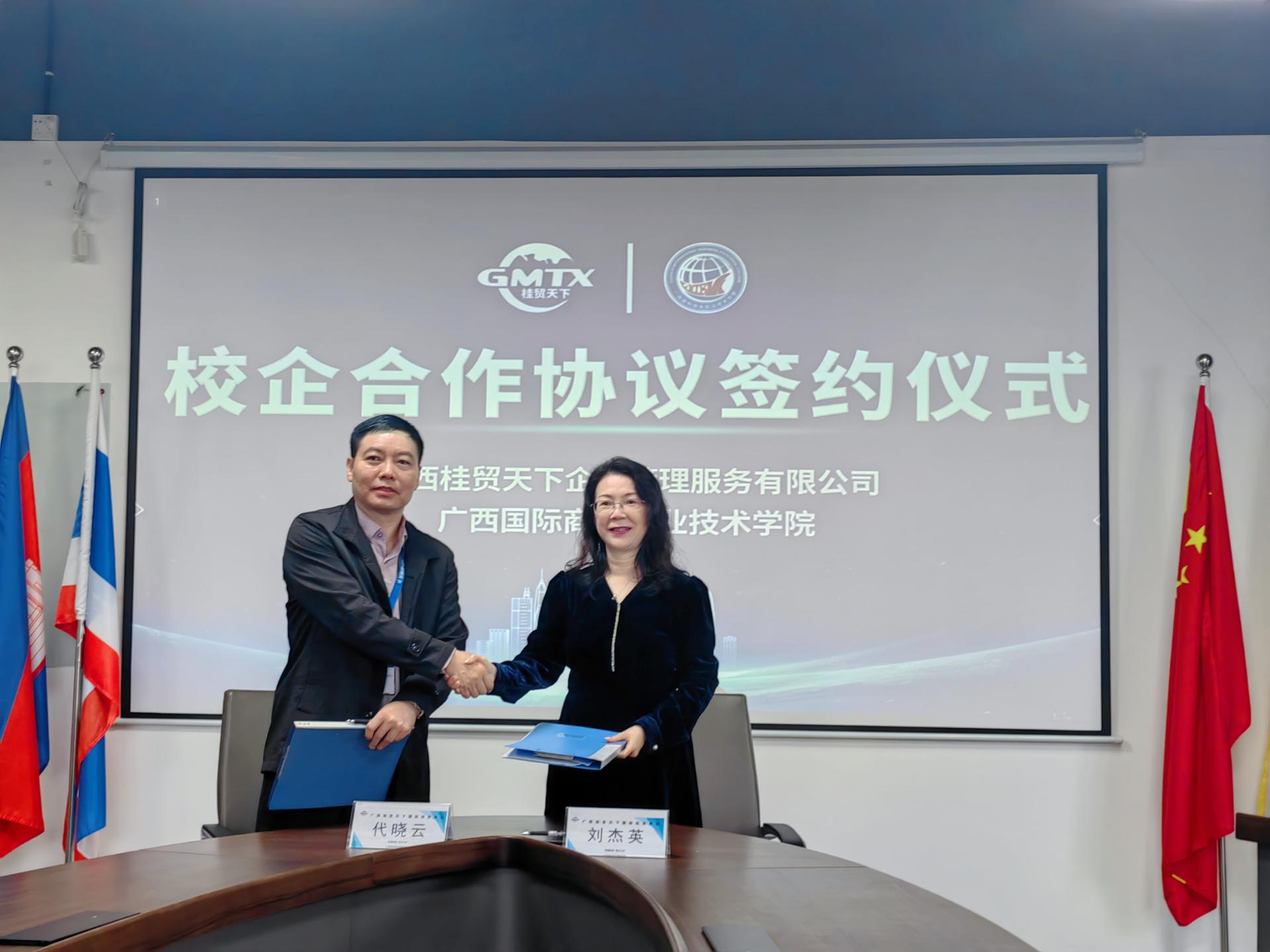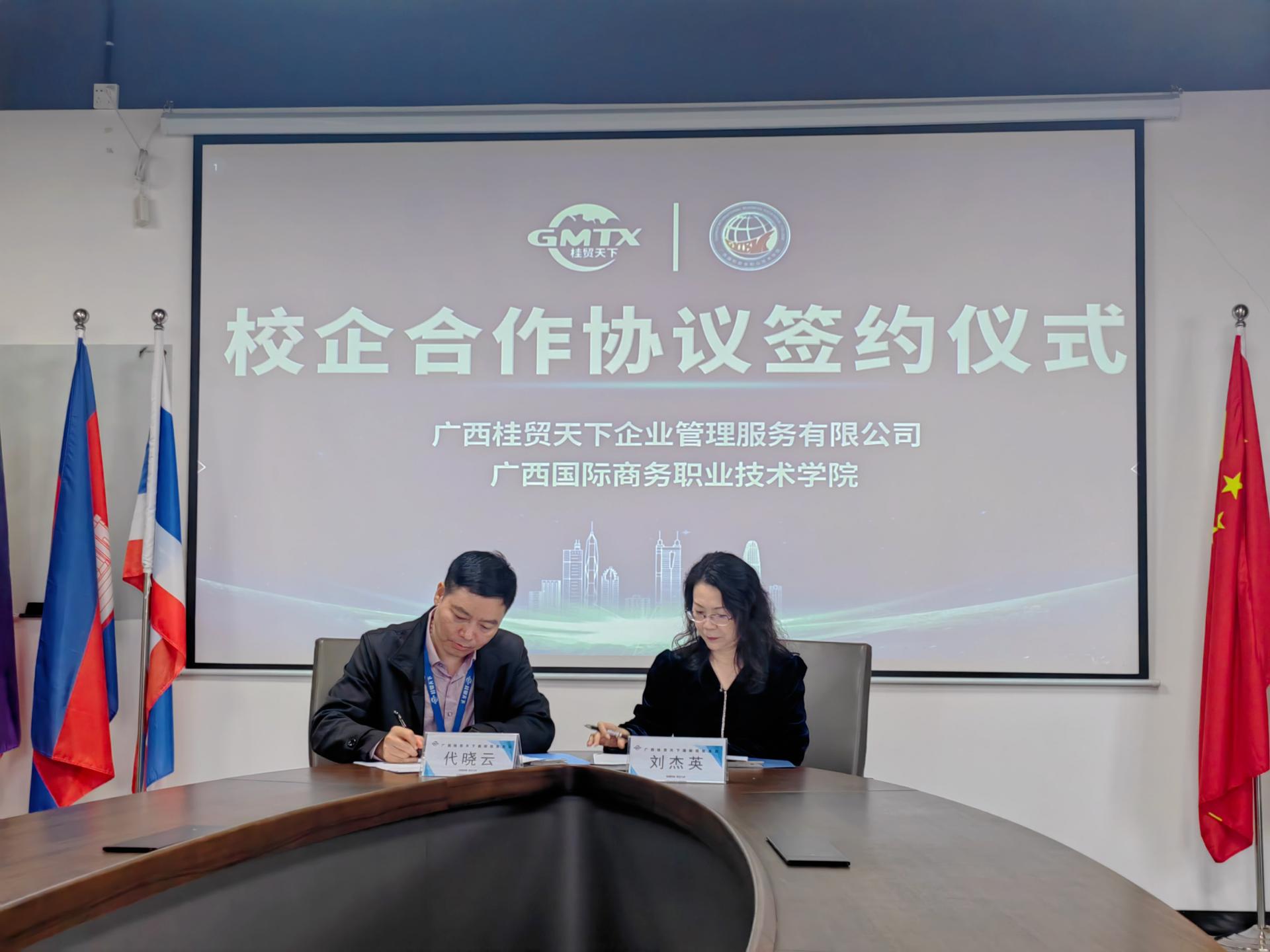 为推动产教融合校企合作,充分发挥产教资源优势,丰富专业建设内涵,提升社会服务能力,助力专业建设创新发展,11月23日下午,广西国际商务职业技术学院与广西桂贸天下企业管理服务有限公司在公司总部举行了“东盟语种语言服务实践基地”揭牌仪式。公司总经理助理代晓云,人事经理徐丽,TikTok海外项目负责人吴宗媚,我校副校长刘杰英,应用外国语学院副院长朱倩倩与相关专业带头人及骨干教师代表出席揭牌仪式。