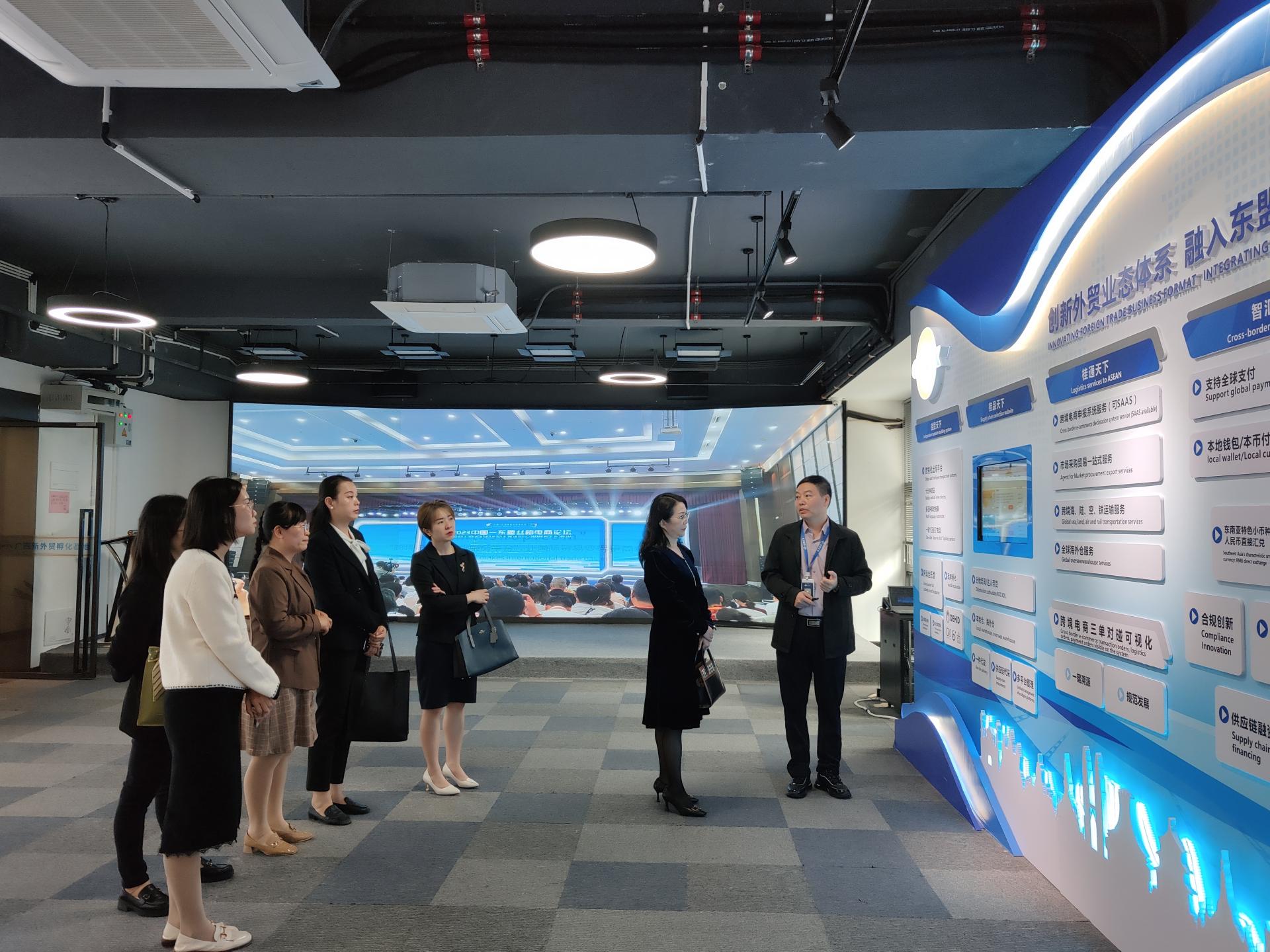 揭牌仪式前,公司总经理助理代晓云带领大家参观了公司东盟直播基地,并详细介绍桂贸天下、桂品天下、桂通天下、智汇天下、桂贸大学等主营业务和项目情况。
